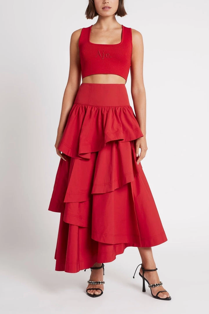 Cosmos Tiered Frill Midi Skirt by Aje.