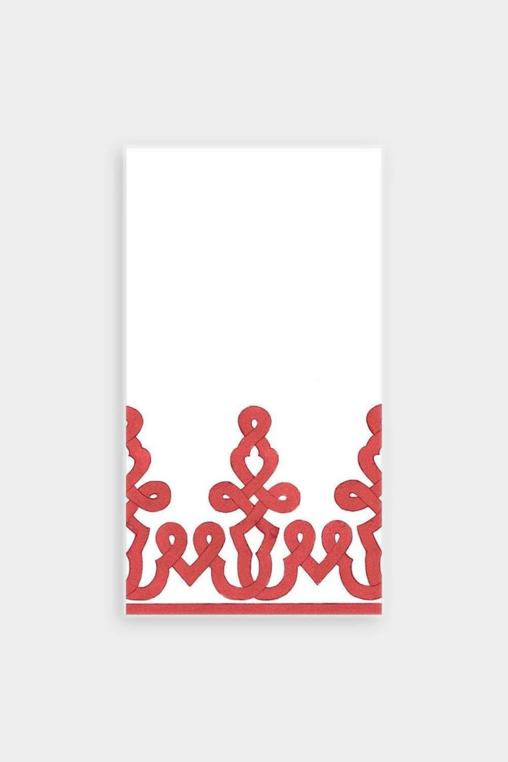 Dessin Passementerie Paper Linen Guest Towel Napkins in Red by Caspari