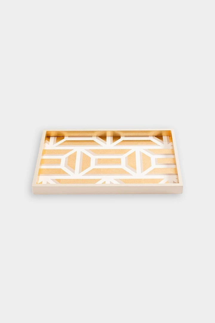 Garden Gate Lacquer Vanity Tray in White & Gold by Caspari