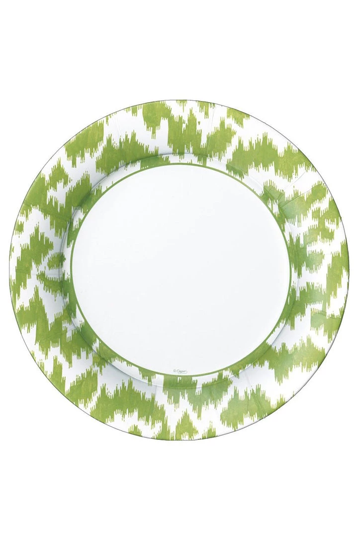 Modern Moiré Paper Dinner Plates in Green by Caspari