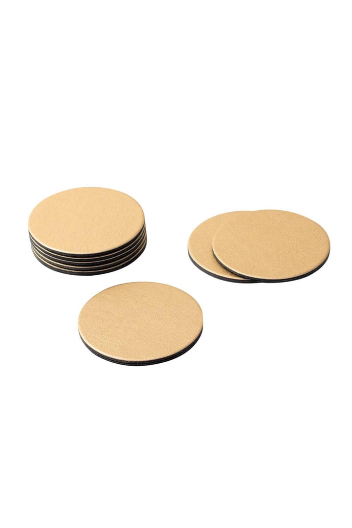 Round Leather Felt-Backed Coasters in Gold by Caspari