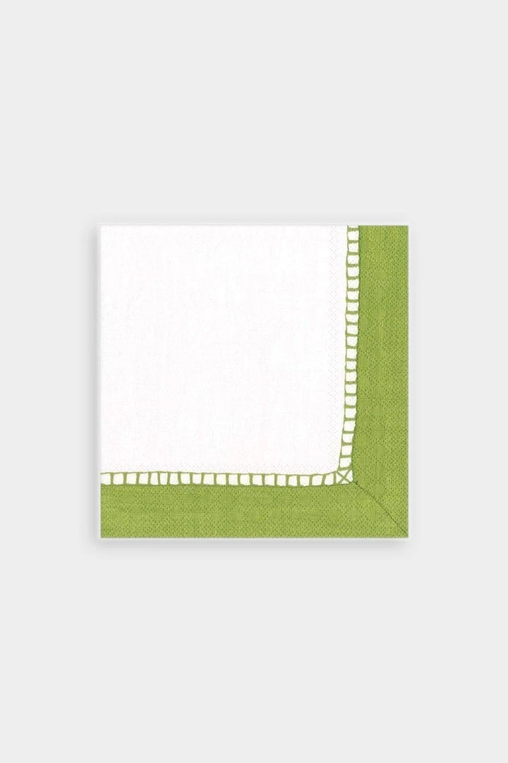 Linen Border Paper Cocktail Napkins in Green by Caspari