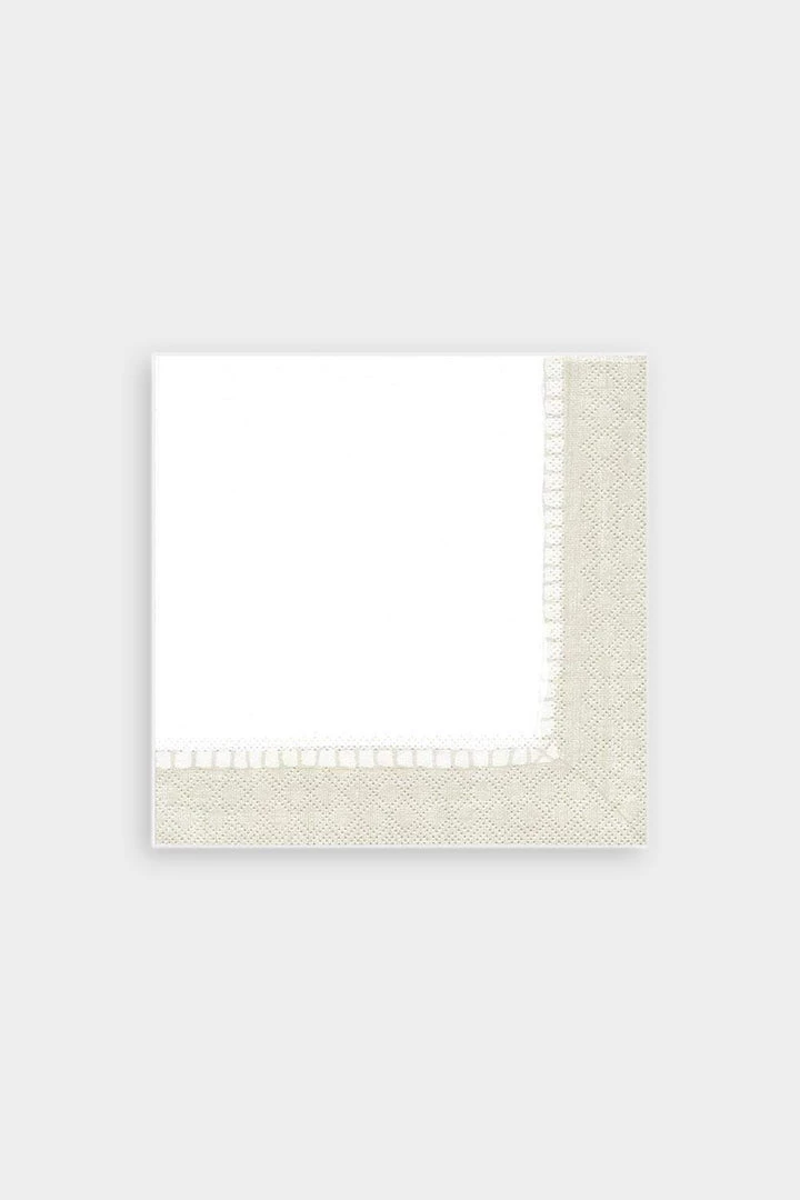 Linen Border Paper Cocktail Napkins in Natural in White by Caspari