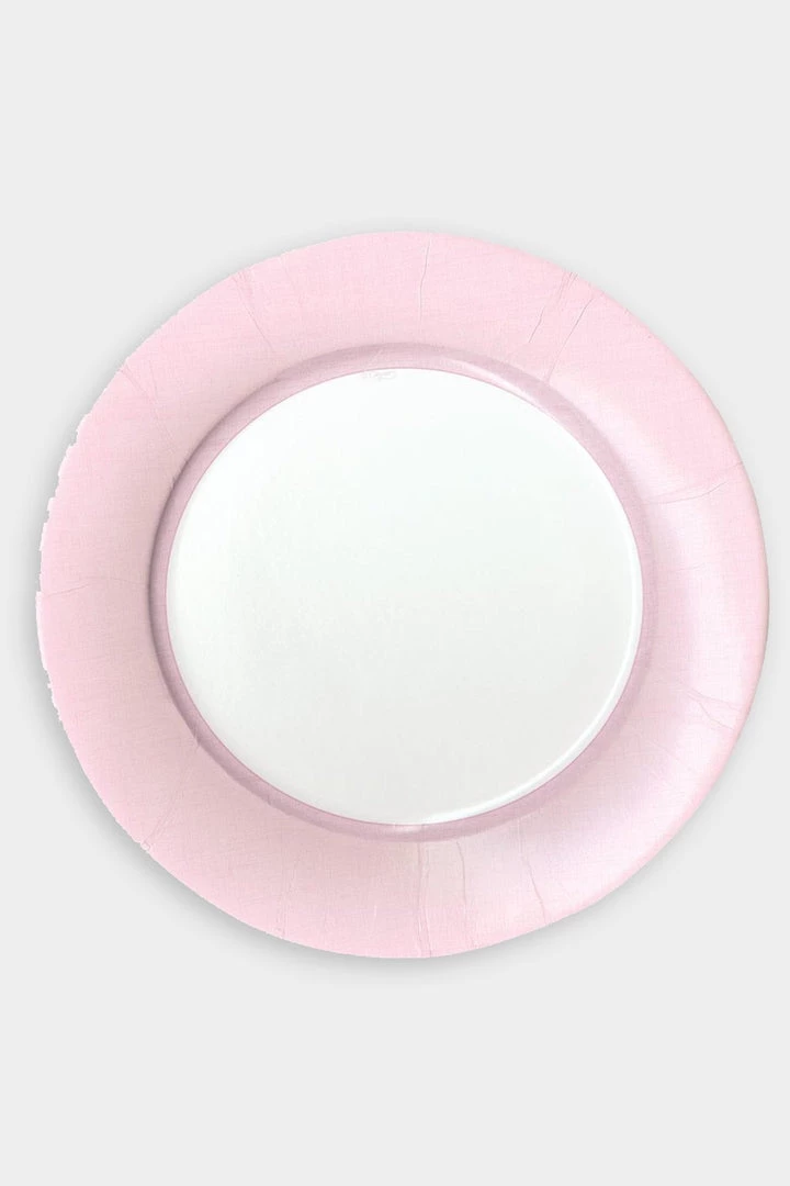 Linen Border Paper Dinner Plates in Petal Pink by Caspari