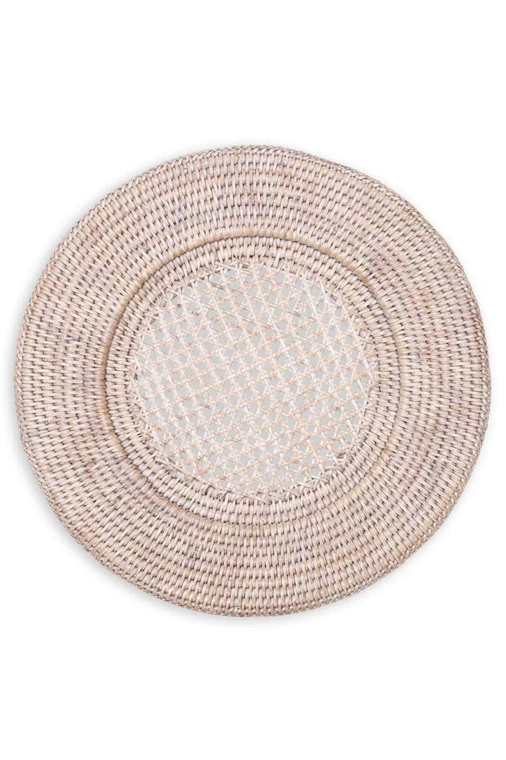 Rattan Round Plate Charger in White Natural by Caspari