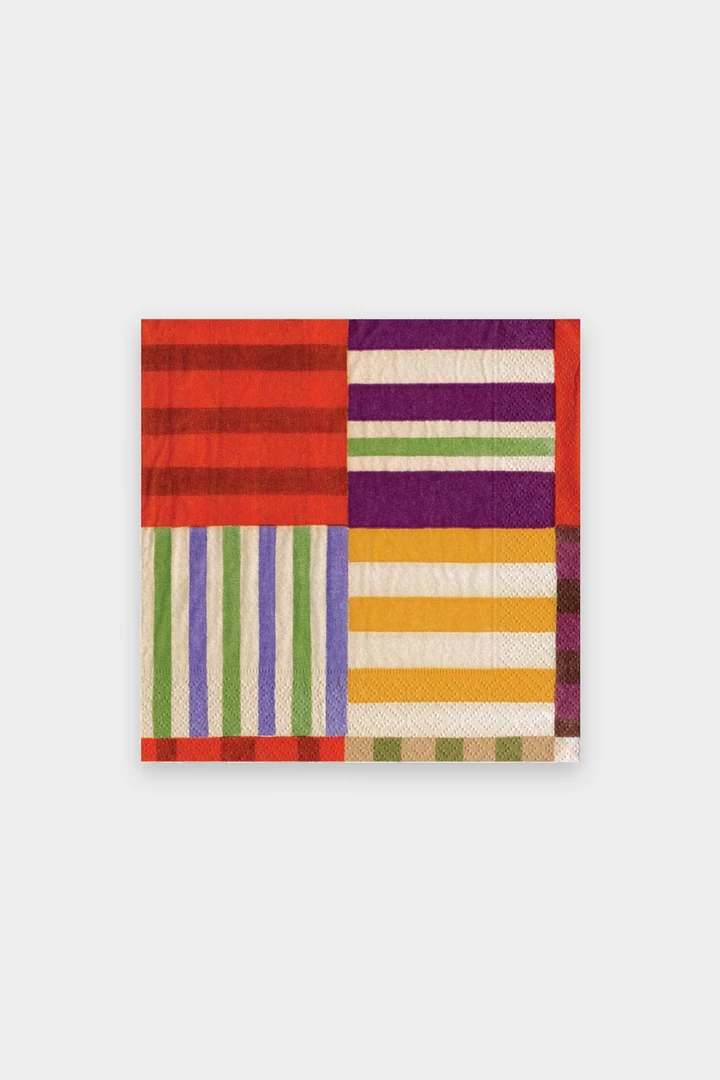 Striped Patchwork Paper Cocktail Napkins in Purple by Caspari
