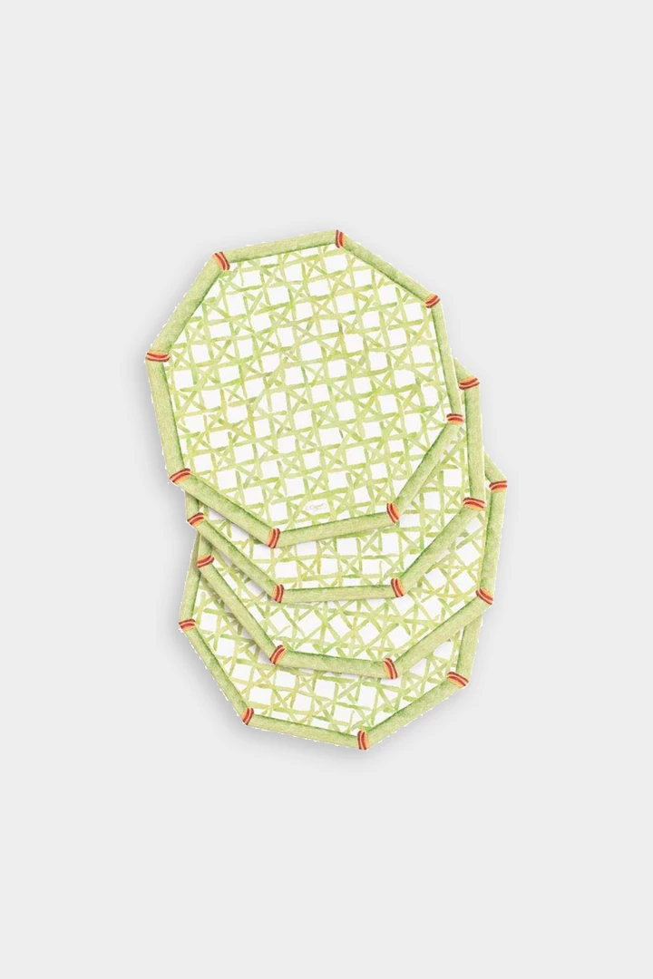 - These vinyl-coated paper, die-cut coasters arrive in a cello bag.