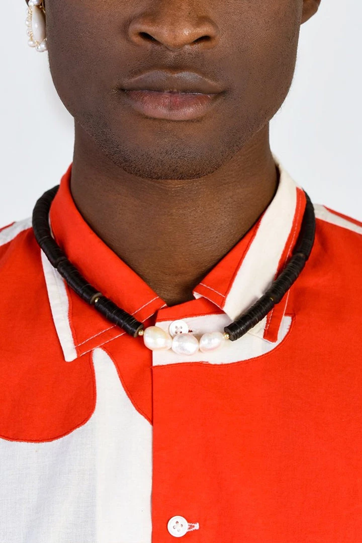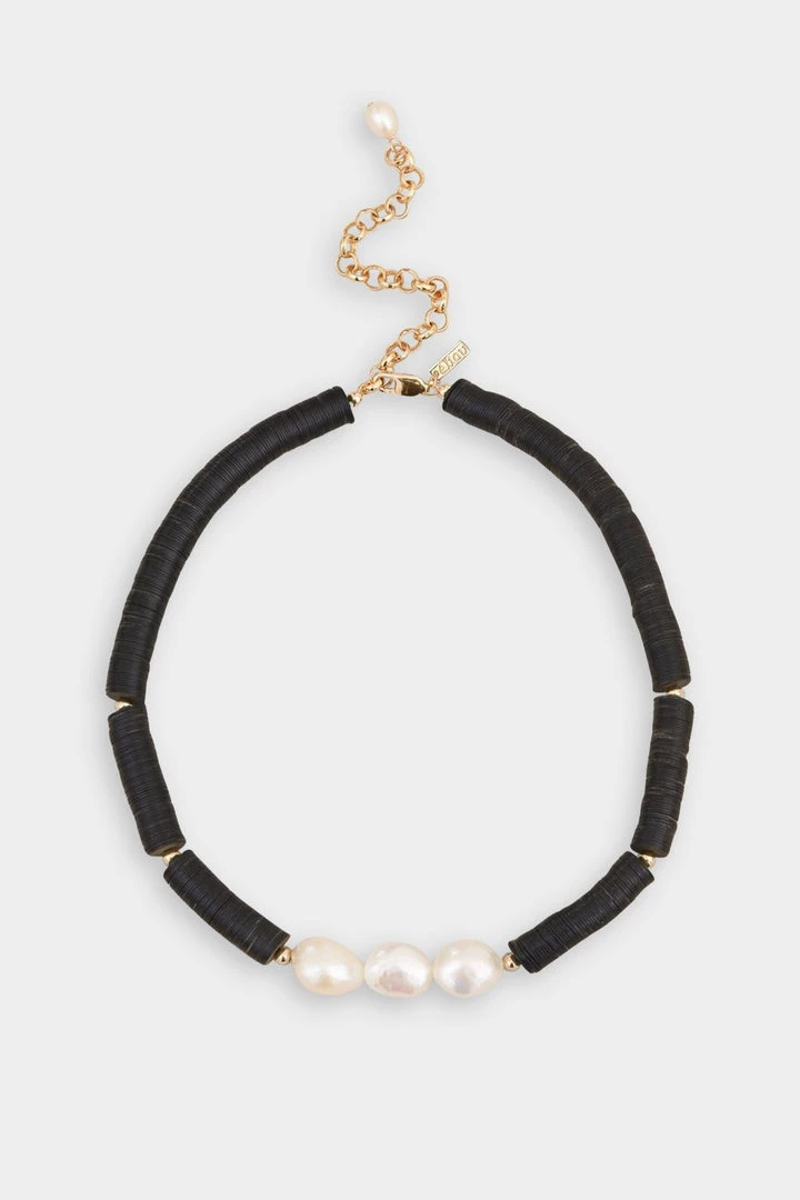- Composition: Adjustable African disk bead necklace / Gold plated beads / Freshwater pearls