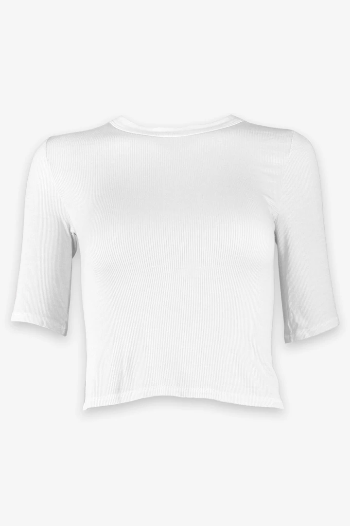Silk Rib Cropped Half Sleeve Crew by Enza Costa