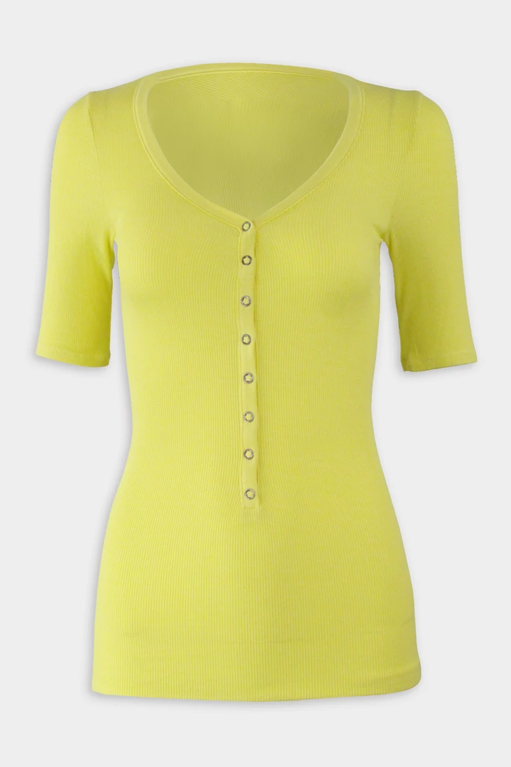 Silk Rib Half Sleeve Snap Henley Shirt by Enza Costa