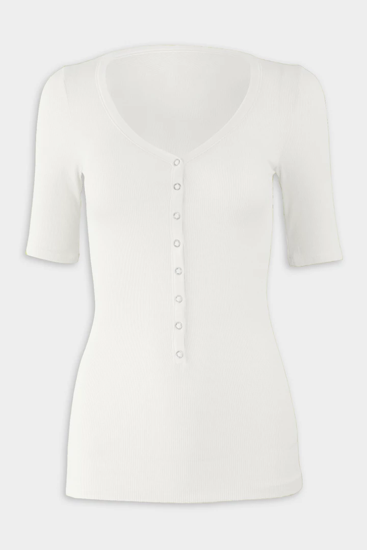 Silk Rib Half Sleeve Snap Henley Shirt by Enza Costa
