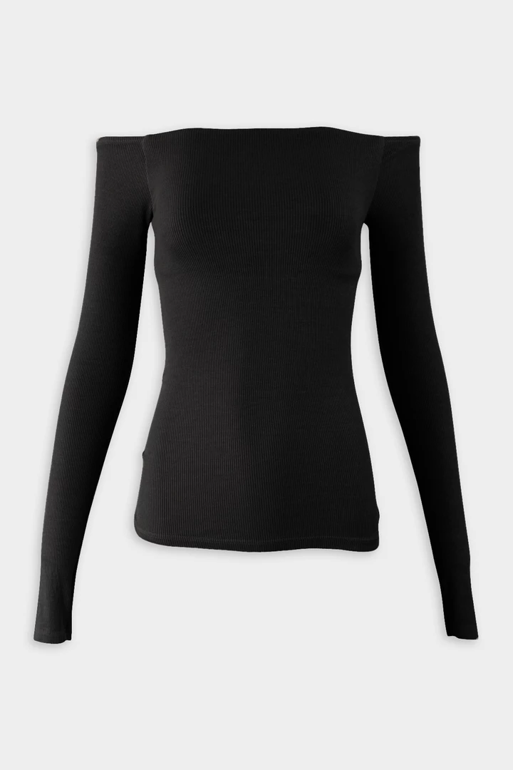 Silk Rib Off Shoulder Long Sleeve Top By Enza Costa