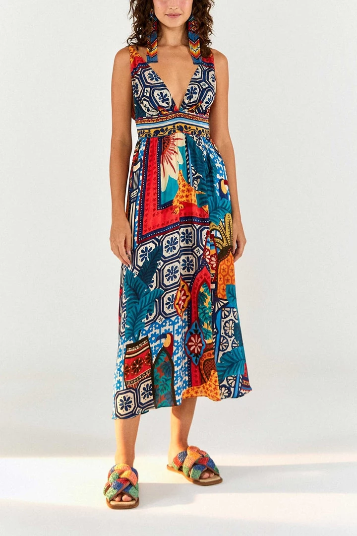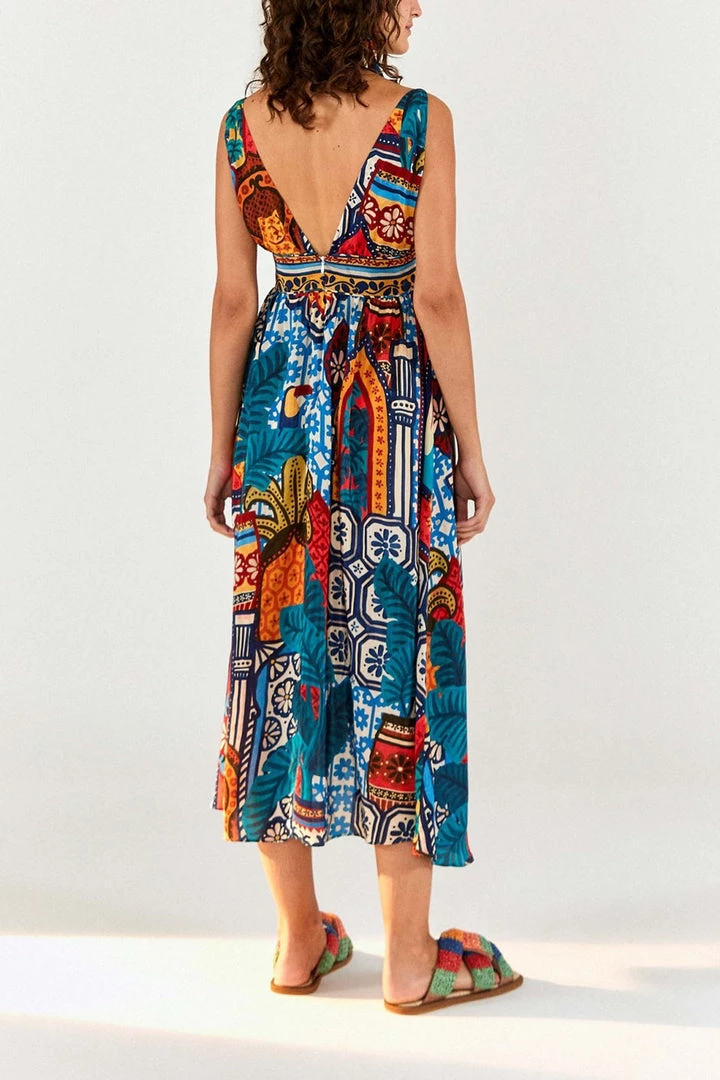 Forest Tiles V-Neck Midi Dress by FARM Rio