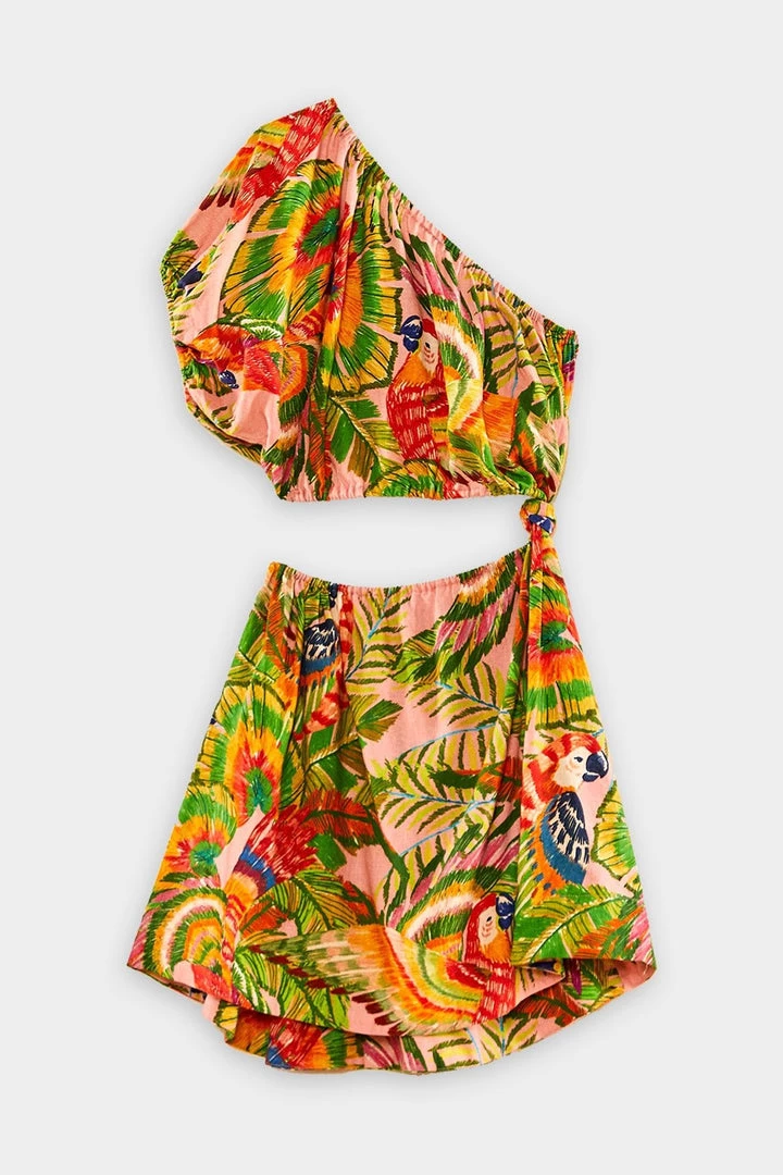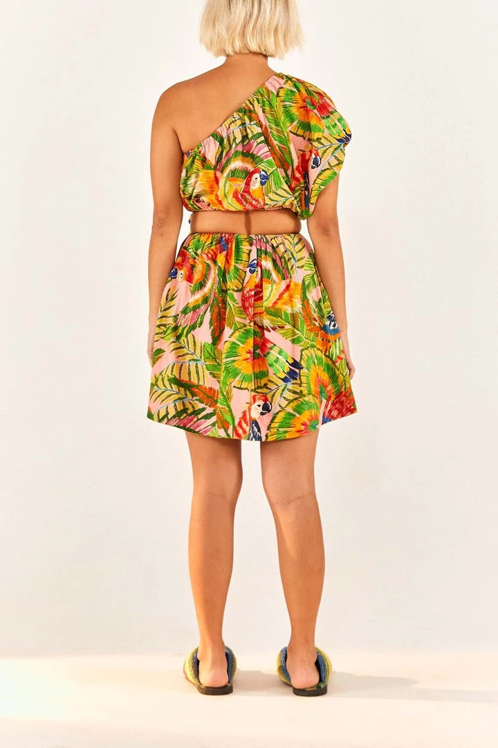 Macaw Leaves One-Shoulder Mini Dress by FARM Rio