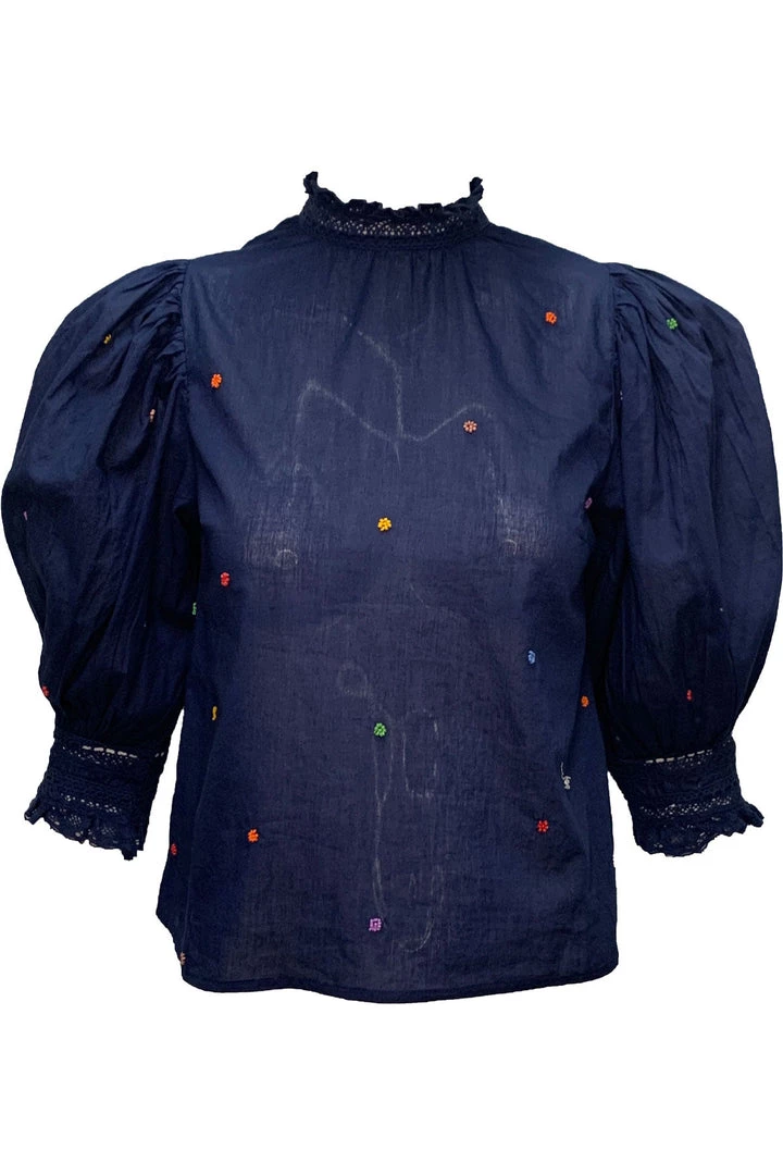 Navy Embroidered Blouse by FARM Rio