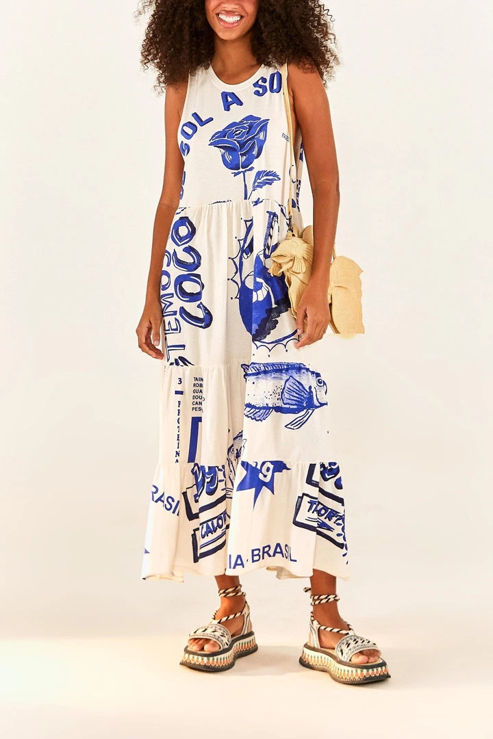 White Rainha Das Aguas T Shirt Dress by FARM Rio