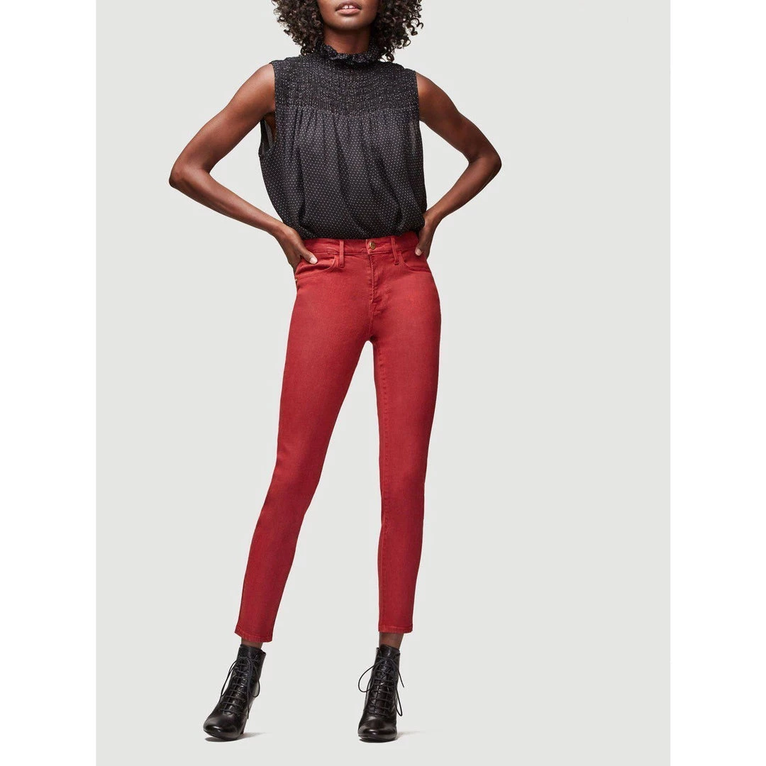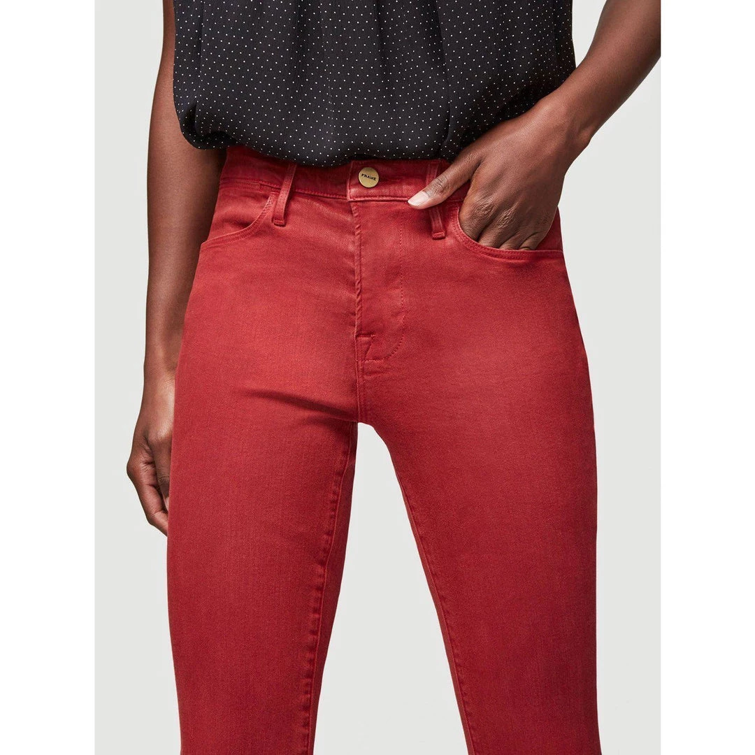 These jeans have the perfect shade of red. Pair with leopard items and all of your Fall favorites. 5 pockets and zipper closure.