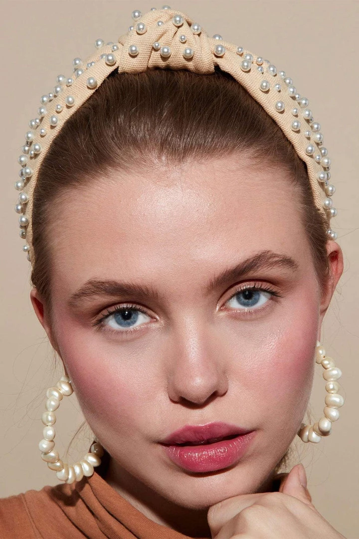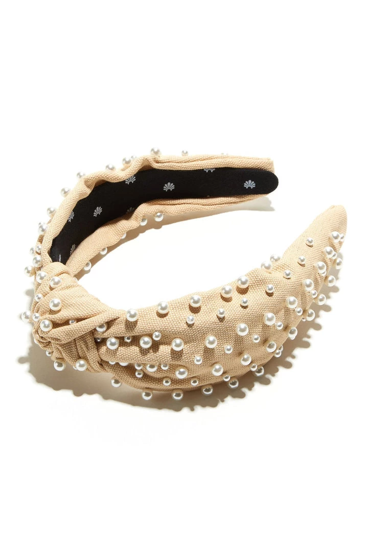 Camel Woven Multi Pearl Knotted Headband by Lele Sadoughi