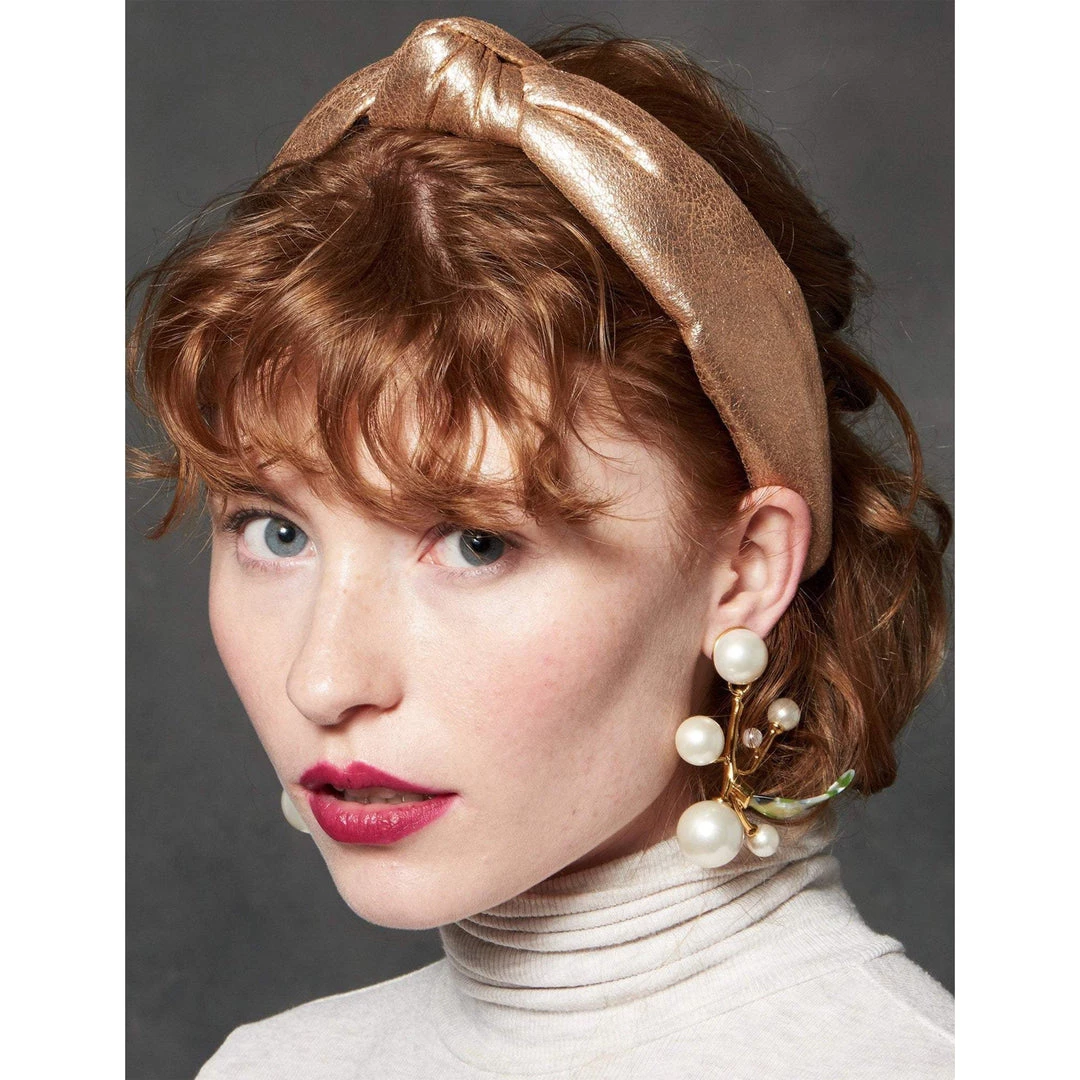 Glittery hair bling! This glitzy and sparkling headband is the perfect accessory for days when you want to add flair to your hair and your whole outfit! In a beautiful metallic gold, this hair bow is soft and cushiony.