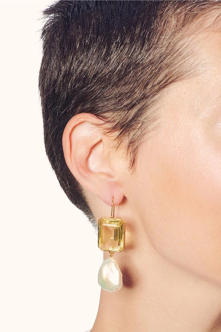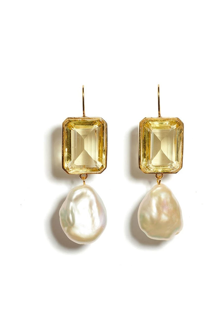 - Composition: Gold-plated brass, lemon topaz quartz, freshwater pearl