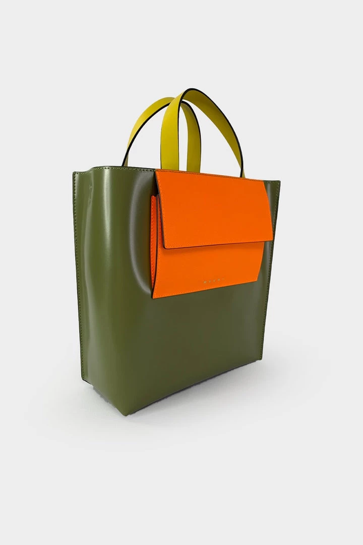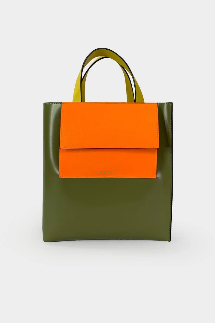 Green Museo Leather Bag with Orange Pocket by MARNI