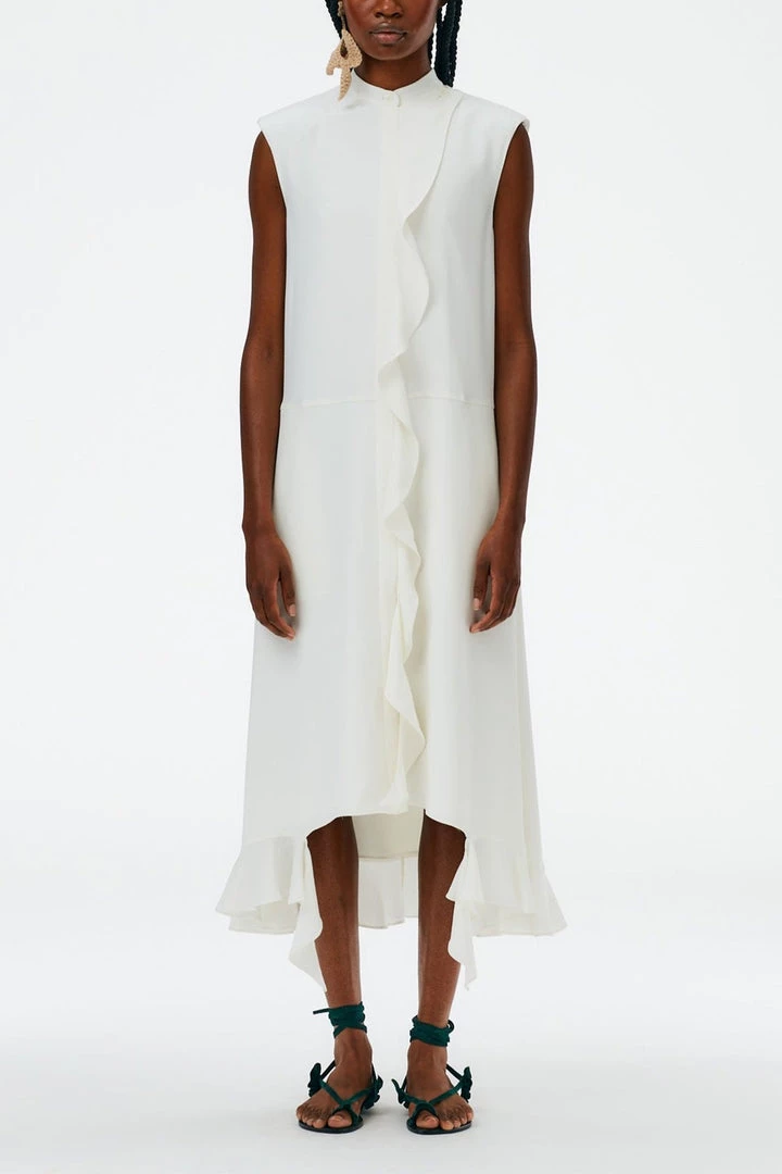 4Ply Silk Detached Ruffle Shirtdress by Tibi