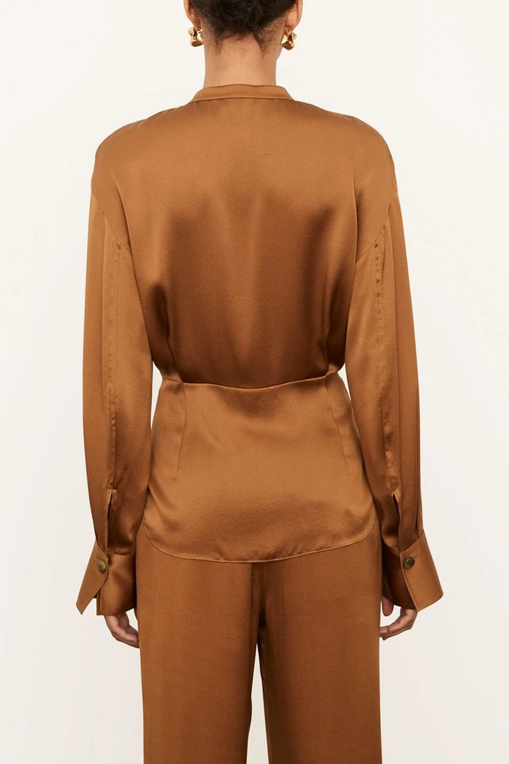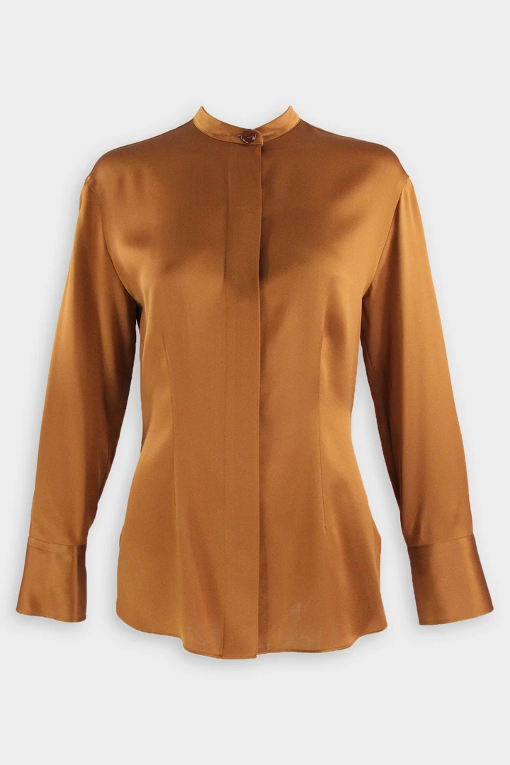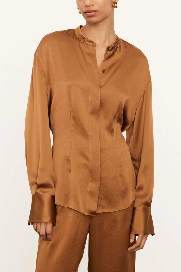 Silk Shaped Long Sleeve Band Collar Blouse by Vince.
