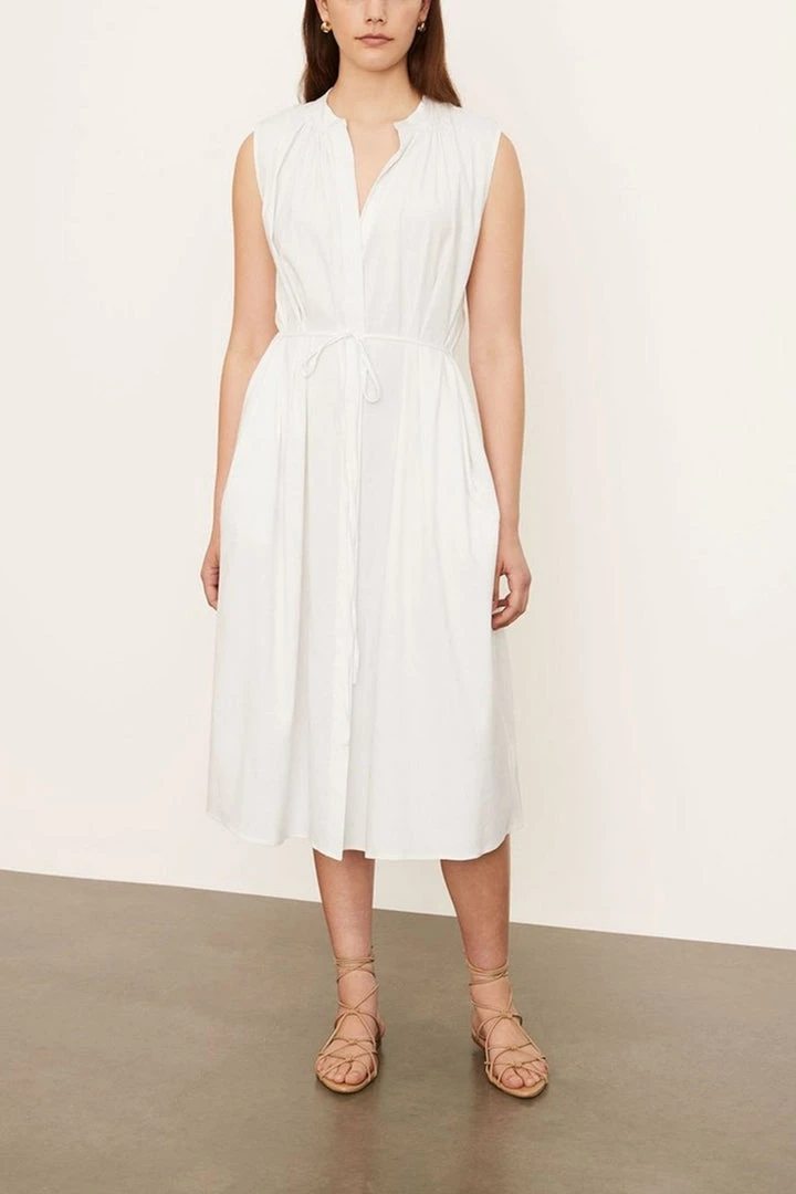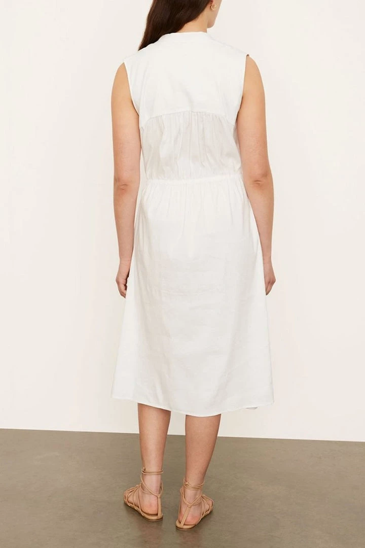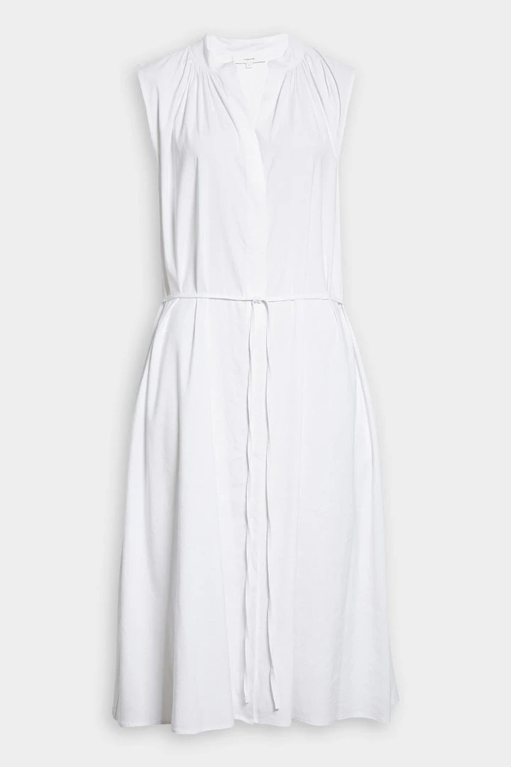 Sleeveless Shirred Band Collar Dress by Vince.