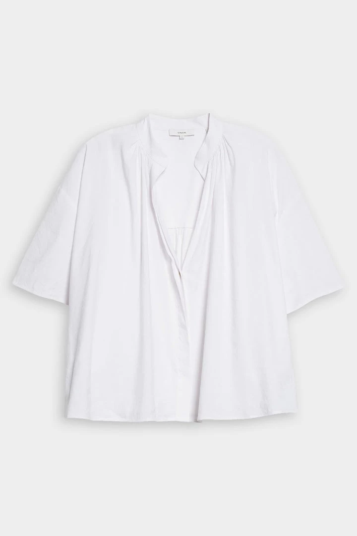 Short Sleeve Shirred Band Collar Blouse by Vince.