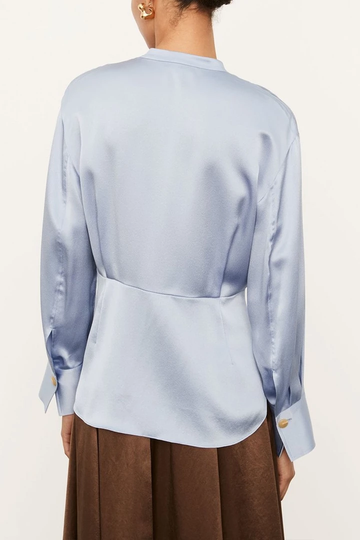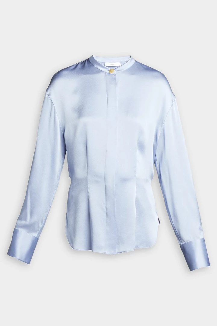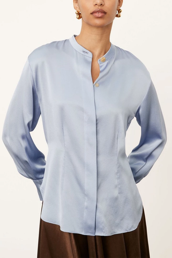 Silk Shaped Long Sleeve Band Collar Blouse by Vince.